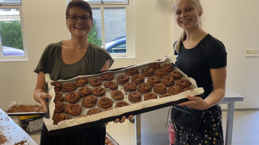 Samen vertrokken we naar Melissant om bij bakkerij van Harberden zélf aan de slag te gaan. Voor Manou leek het meer een verlengde werkdag, maar voor mij was het een uitje dat ik echt even nodig had. We konden kiezen uit twee soorten bolussen. De Zeeuwse bolus of de Flakkeese bolus. Nu ben ik nogal een fan van de Zeeuwse versie, dus dat moest hem worden. Na uitleg over de deegjes, werden we zelf aan de slag gezet en was het kneden geblazen. De werkbank kreeg een berg basterdsuiker waar de Himalaya jaloers op zou zijn en ik had nooit gedacht dat ik er zó veel van nodig zou hebben. Toen begon het draaien. Een handeling die niet de gemakkelijkste is, en Manou heeft me zo hier en daar een beetje bijgestuurd, maar het resultaat mocht er zijn.